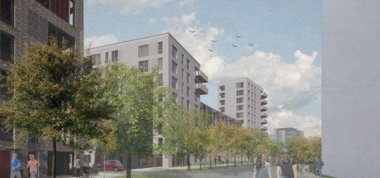 Works are inclusive of 4 no. A3 commercial units, 91 no. underground car parking spaces in podium slab structure and finishes, a communal link block and basement plant areas following on from an advance enabling works contract and landscaping.